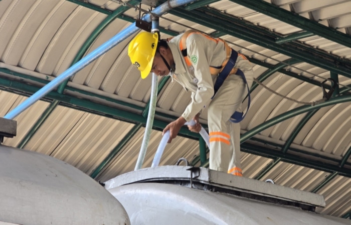 Di samping itu, pengisian air dilakukan dengan metode yang efisien dan strategis, memanfaatkan lifeline atau sistem pelindung jatuh yang terpasang di atas jalur. Sistem ini dirancang untuk memastikan keselamatan saat bekerja di ketinggian, terutama ketika tugas dilakukan pada malam hari atau dini hari.